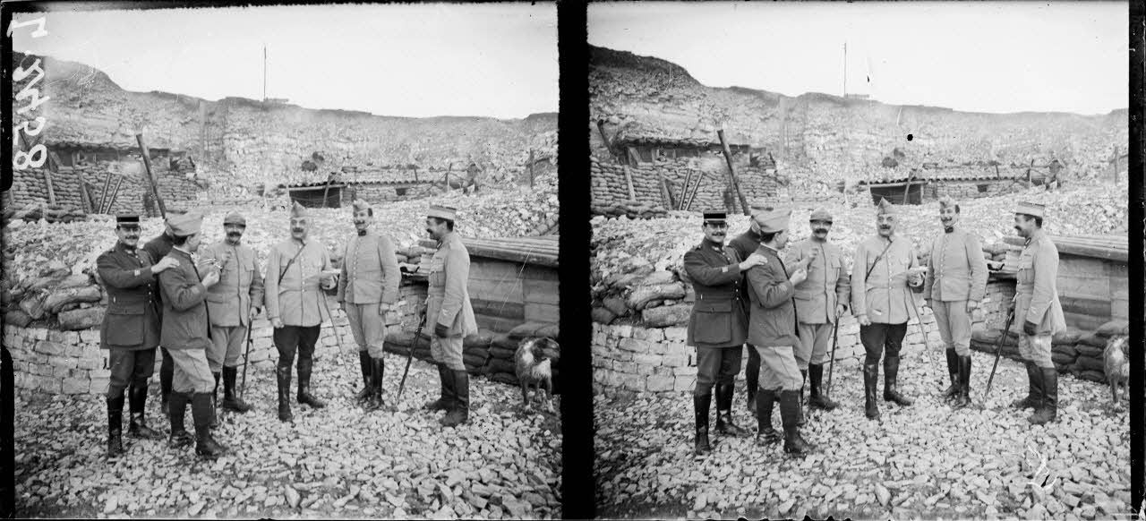 Les généraux Corvisart et Pétain en visite sur le front de Verdun en mars 1917.