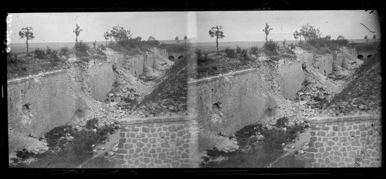 Fort de Troyon. Mur des remparts ayant particulièrement souffert des bombardements. [légende d'origine]