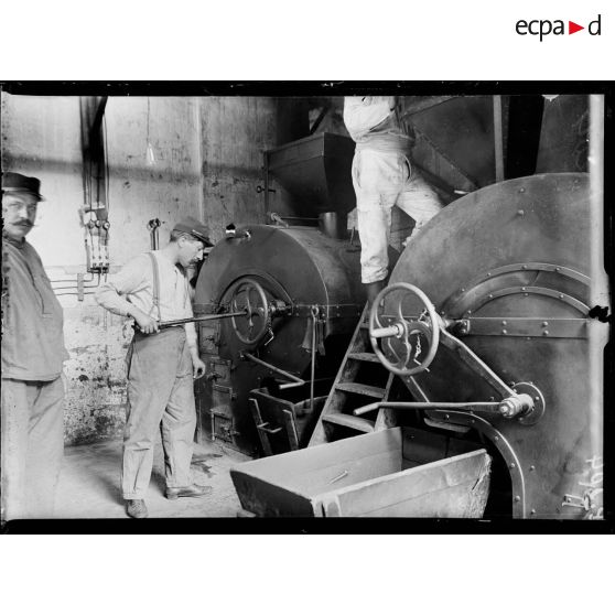 Fort de Vincennes. Malgaches travaillant au petrin mécanique.