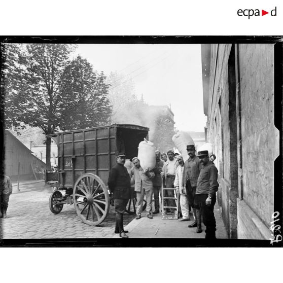 Fort de Vincennes. Boulangerie, les boules sont mises en voiture pour la gare.