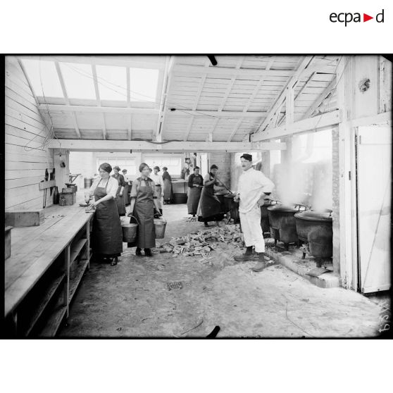 La cuisine de la section de construction des baraquements Adrian au Fort de Vincennes.
