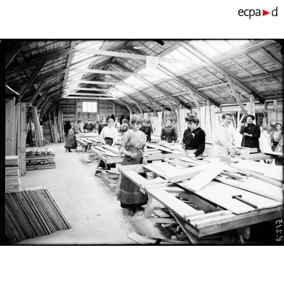 Vincennes. Les femmes menuisiers. Atelier de couverture des baraquements adrian.