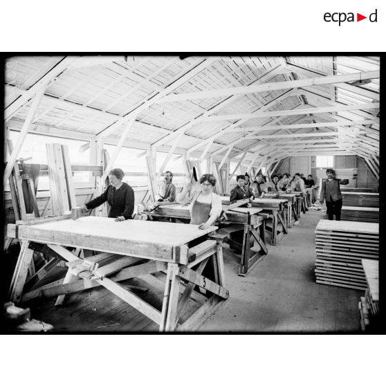 - la section de confection des baraquements Adrian (du nom de leur inventeur, intendant dans l'armée française) : l'atelier de menuiserie est tenu par des femmes ;