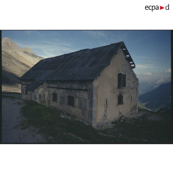 Position des Gondrans. Casernement en service et la piste qui monte à flanc du Janus.