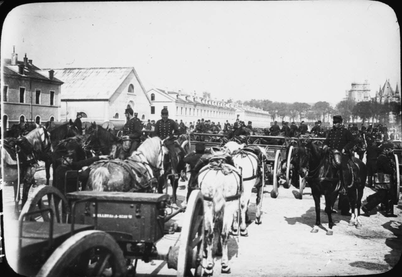 [Fort neuf de Vincennes, 1875. Batterie d'artillerie hippomobile dans la cour du fort].