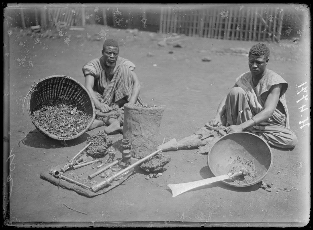 Foumban. Ouvriers fondeurs de pipes en cuivre. [légende d'origine]