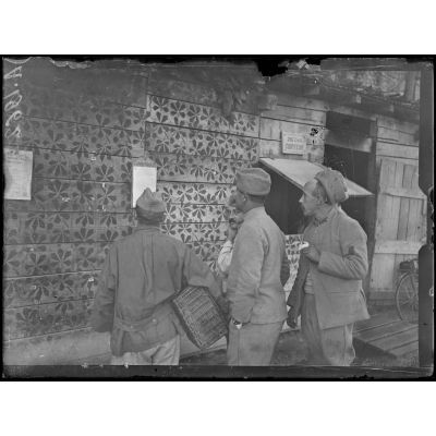 Soldats jouant aux dames, chassant les rats, distribuant la soupe et l'apportant sur les lignes de combat.