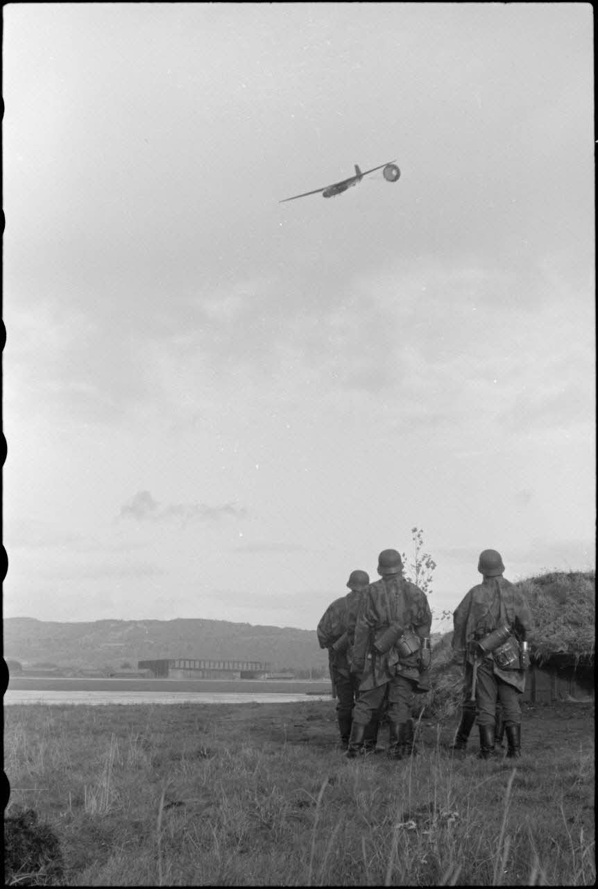 Sur le tarmac du terrain d'aviation de Trondheim-Vaernes (Norvège), une manoeuvre débute en présence de nombreux officiers de la Wehrmacht (Heer, Luftwaffe et Kriegsmarine).