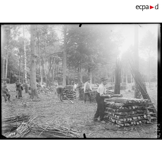 CRP L'Isle Adam. En forêt, bois pour l'intendance et la confection des pieux pour la défense des tranchées.