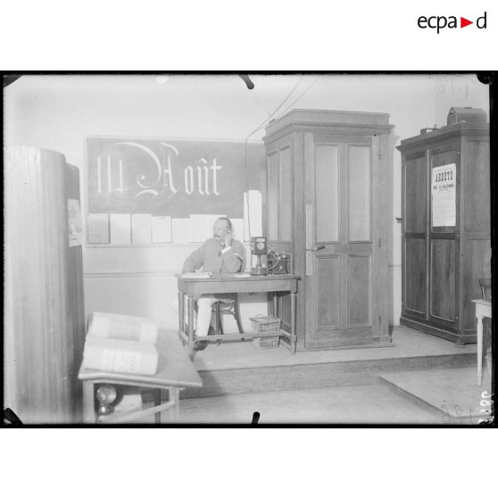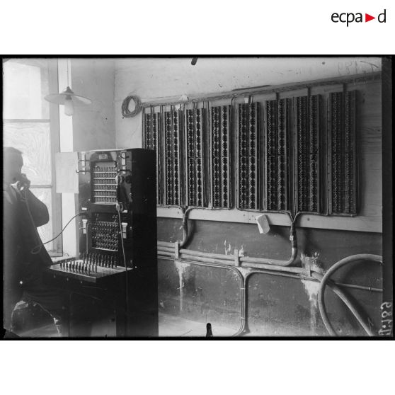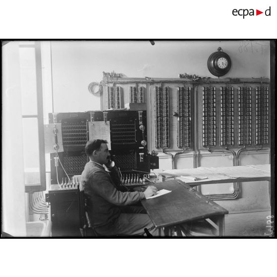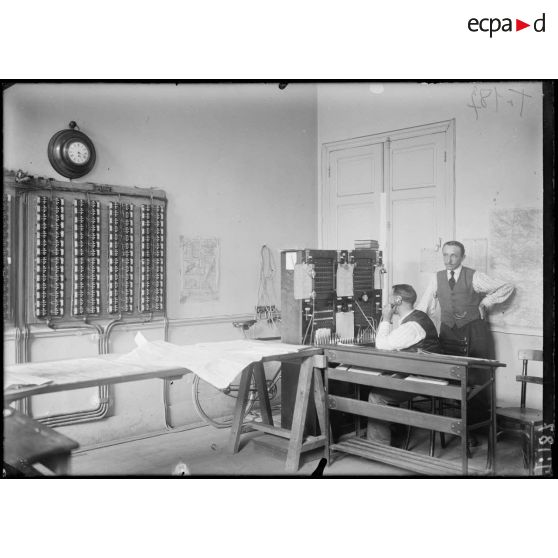 La salle des téléphones au GMP. Au fond devant une table le capitaine Massard (Directeur de la Presse et de la Patrie).