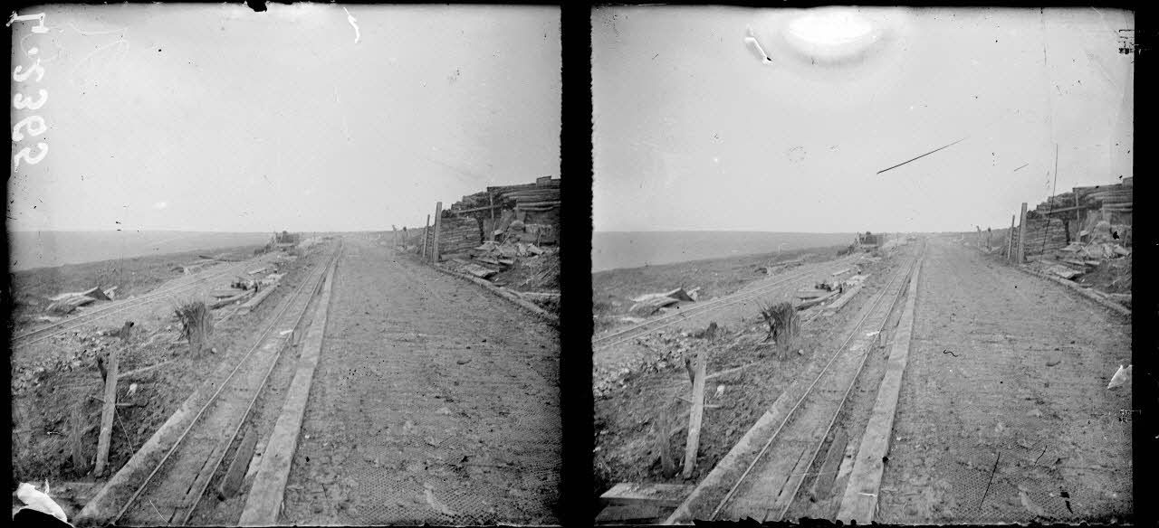 - sur la route de Verdun à Douaumont : des paysages dévastés (SPA 49 L 2333), des cadavres (SPA 49 L 2332/2337/2366), des soldats marchant sur une voie Decauville (SPA 49 L 2335), la "corvée de matériel" (des soldats en file indienne dans les entonnoirs portent des pelles et des pioches, SPA 49 L 2361), un ravitaillement en vin partant pour le fort de Douaumont par Decauville (SPA 49 L 2359), un soldat pose devant l'unique arbre du secteur (SPA 49 L 2366) ;