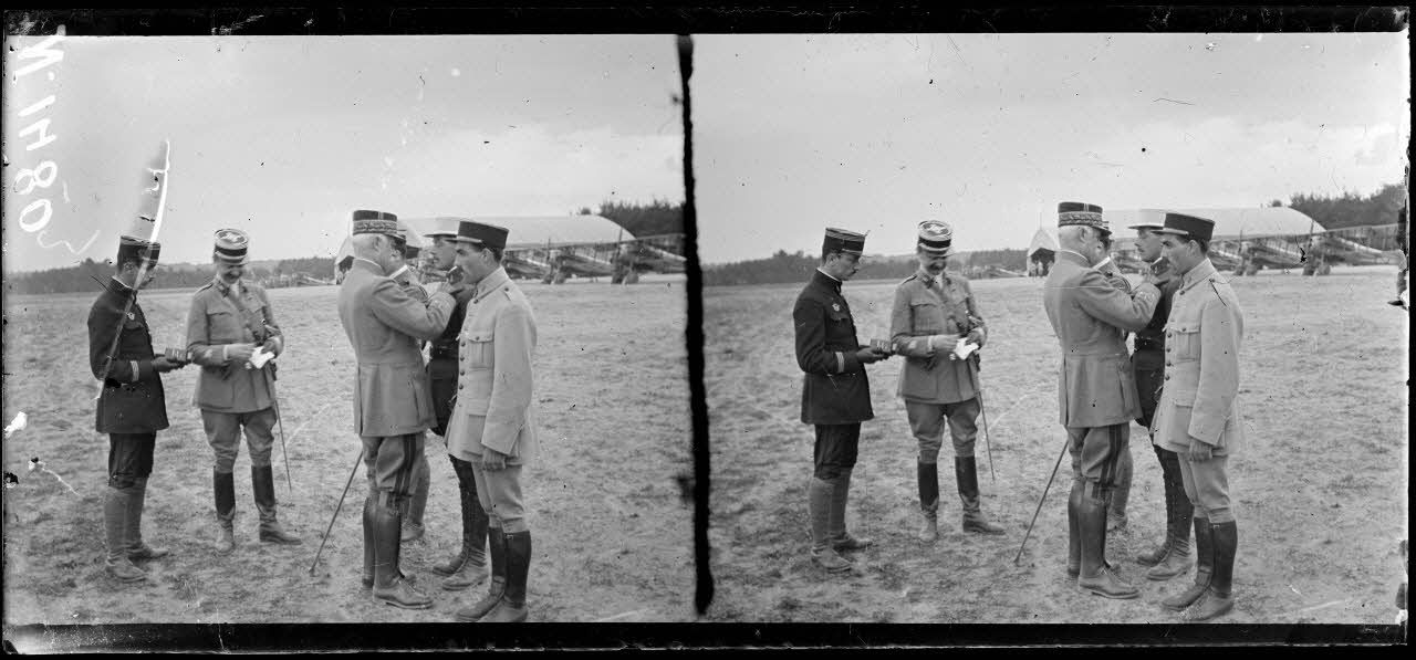 - Au terrain d'aviation de la Noblette, le général Fayolle, chef du groupe d'armées du centre, décore plusieurs aviateurs.