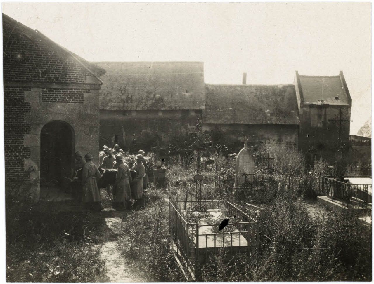 D169-15-31. [Funérailles du caporal Lamarche : enterrement au cimetière].