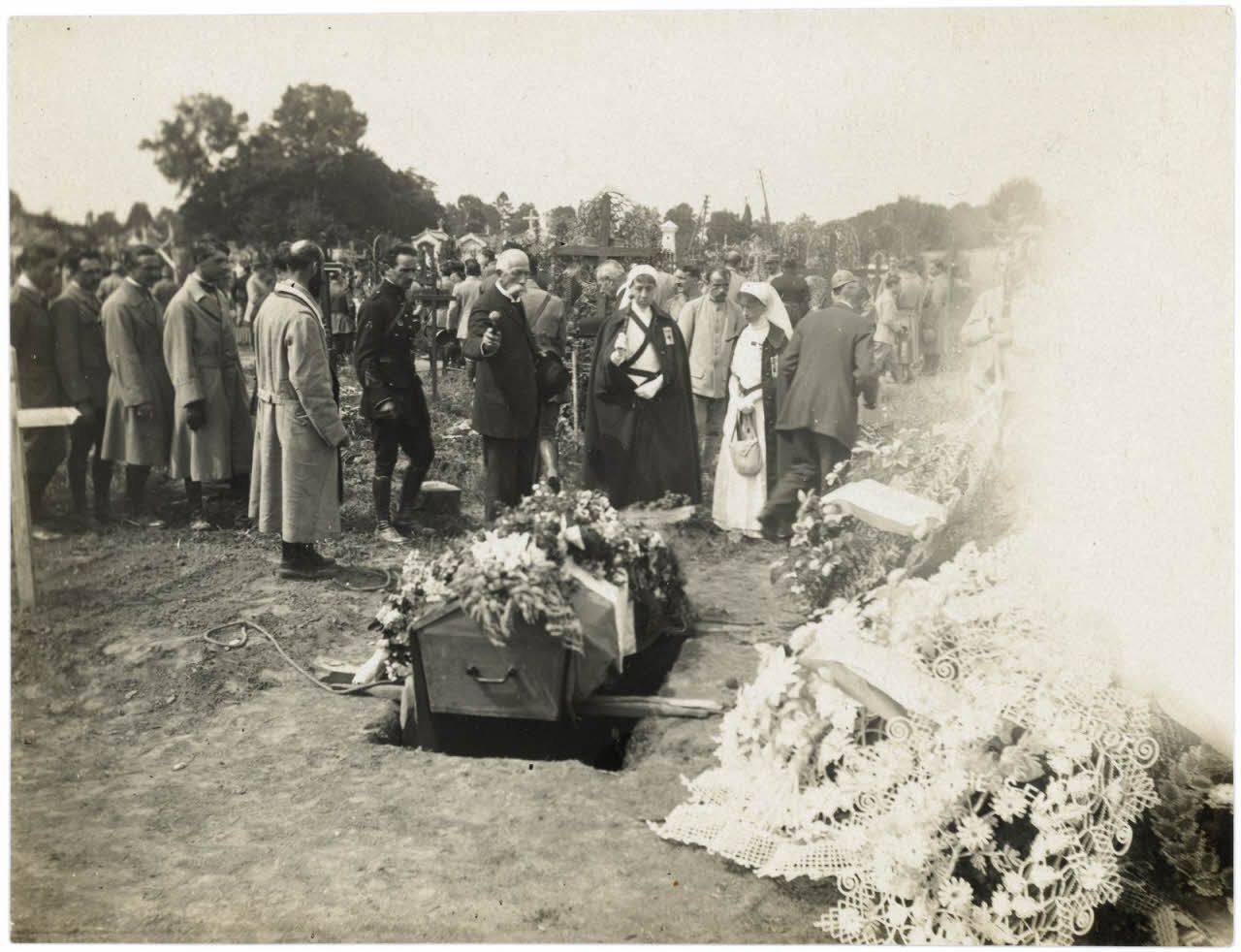 D169-15-31. [Funérailles du caporal Lamarche : enterrement au cimetière].