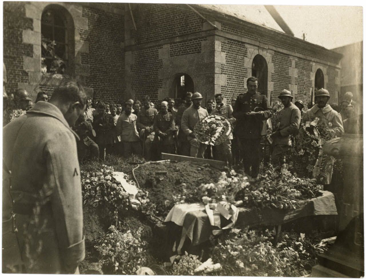 [Funérailles du caporal Lamarche, escadrille N.79, tué le 13 juillet [1917] au cours d'un vol d'acrobatie en l'honneur du 410e d'infanterie].