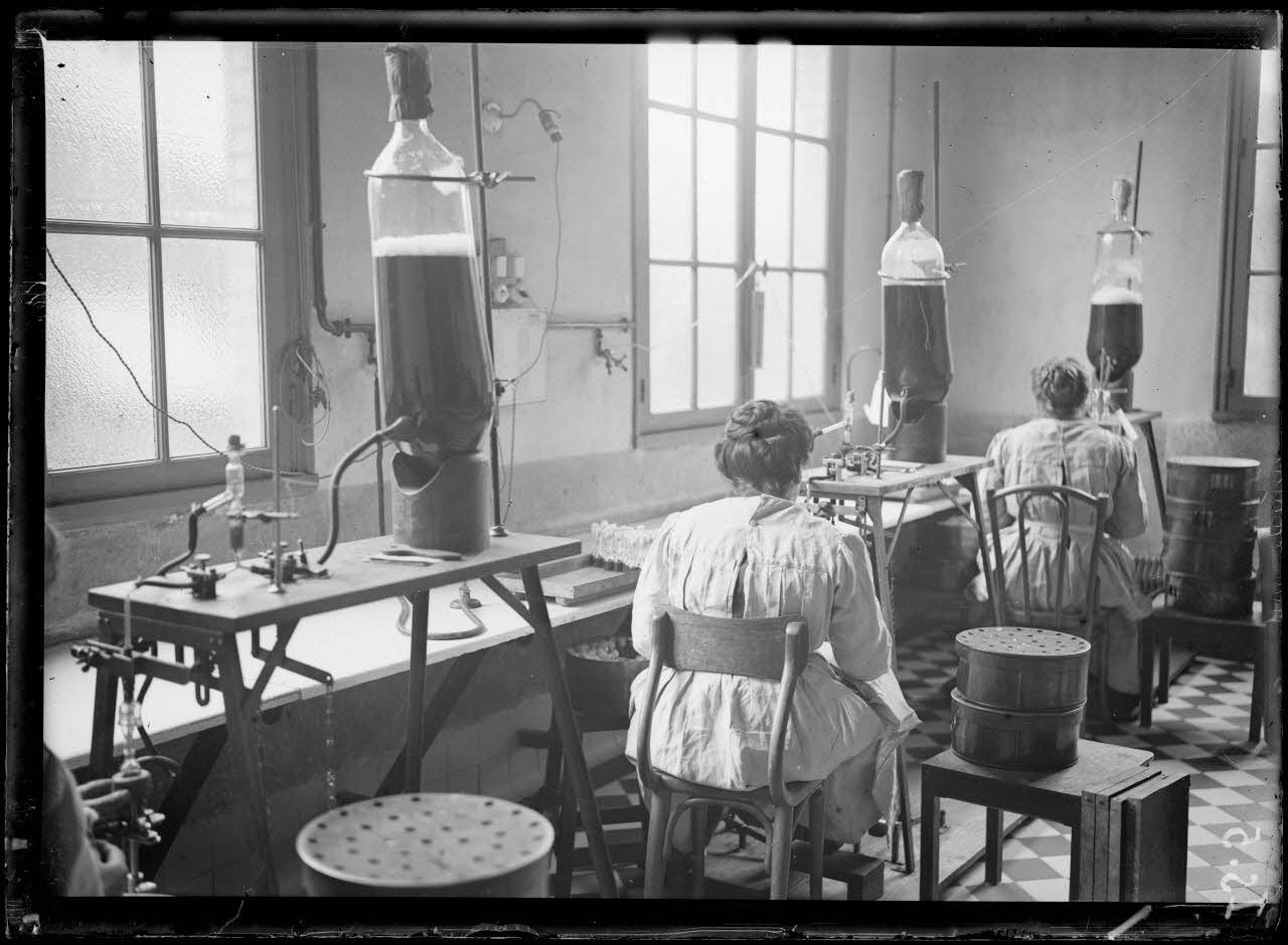 Garches, fabrication de sérums dans l'annexe de l'institut Pasteur.
