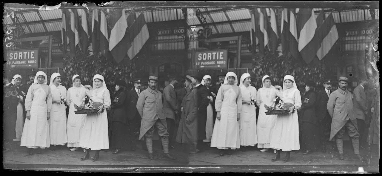 Gare de Lyon. Infirmières sur le quai attendant le train des grands blessés. [légende d’origine]