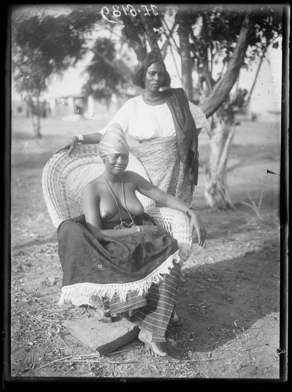 Garoua. Jeunes femmes du Fezzan (debout) et Foulbé (assise). [légende d'origine]