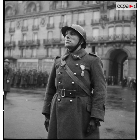Général de brigade de la 9e armée devant l'hôtel de ville de Charleville-Mézières, à l'occasion d'une cérémonie de remises de décoration.