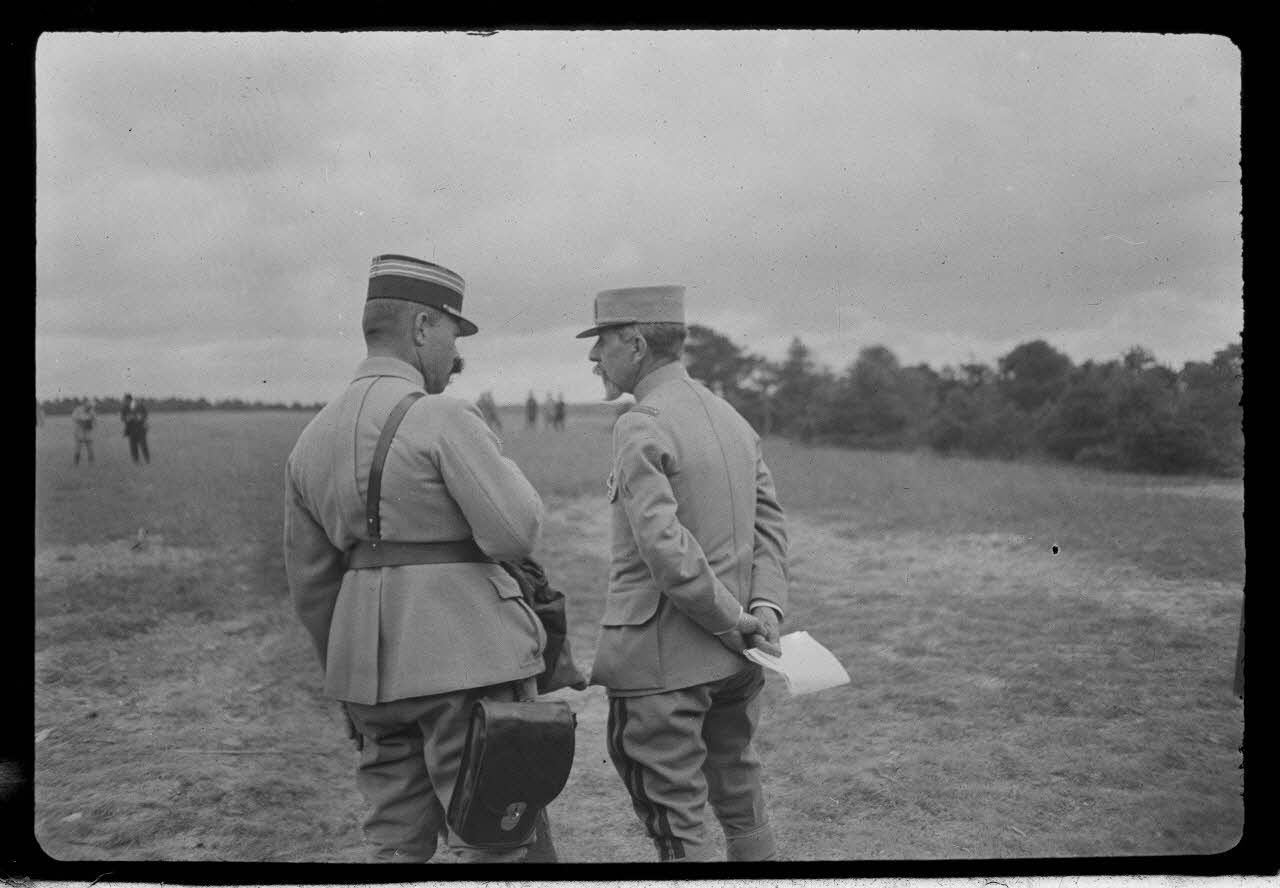 [Général s'entretenant avec un lieutenant-colonel lors d'une visite officielle à Mailly-le-Camp, s.d.]