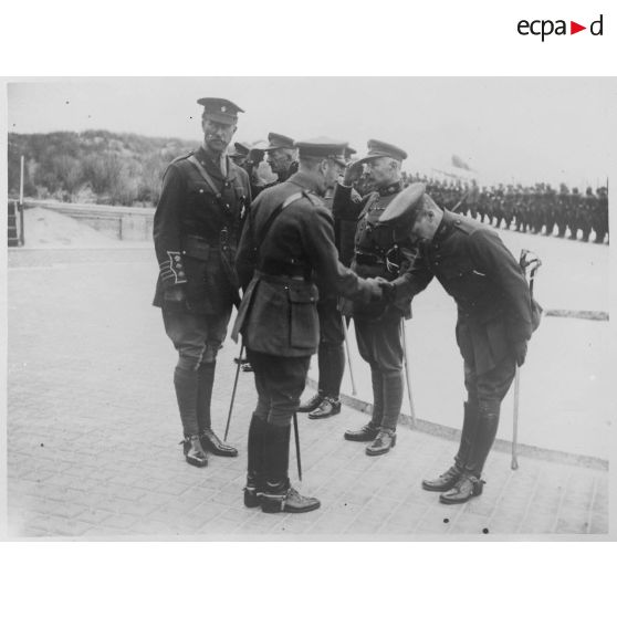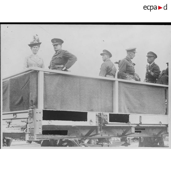 George V, roi d'Angleterre,avec la reine au camp d'aviation.