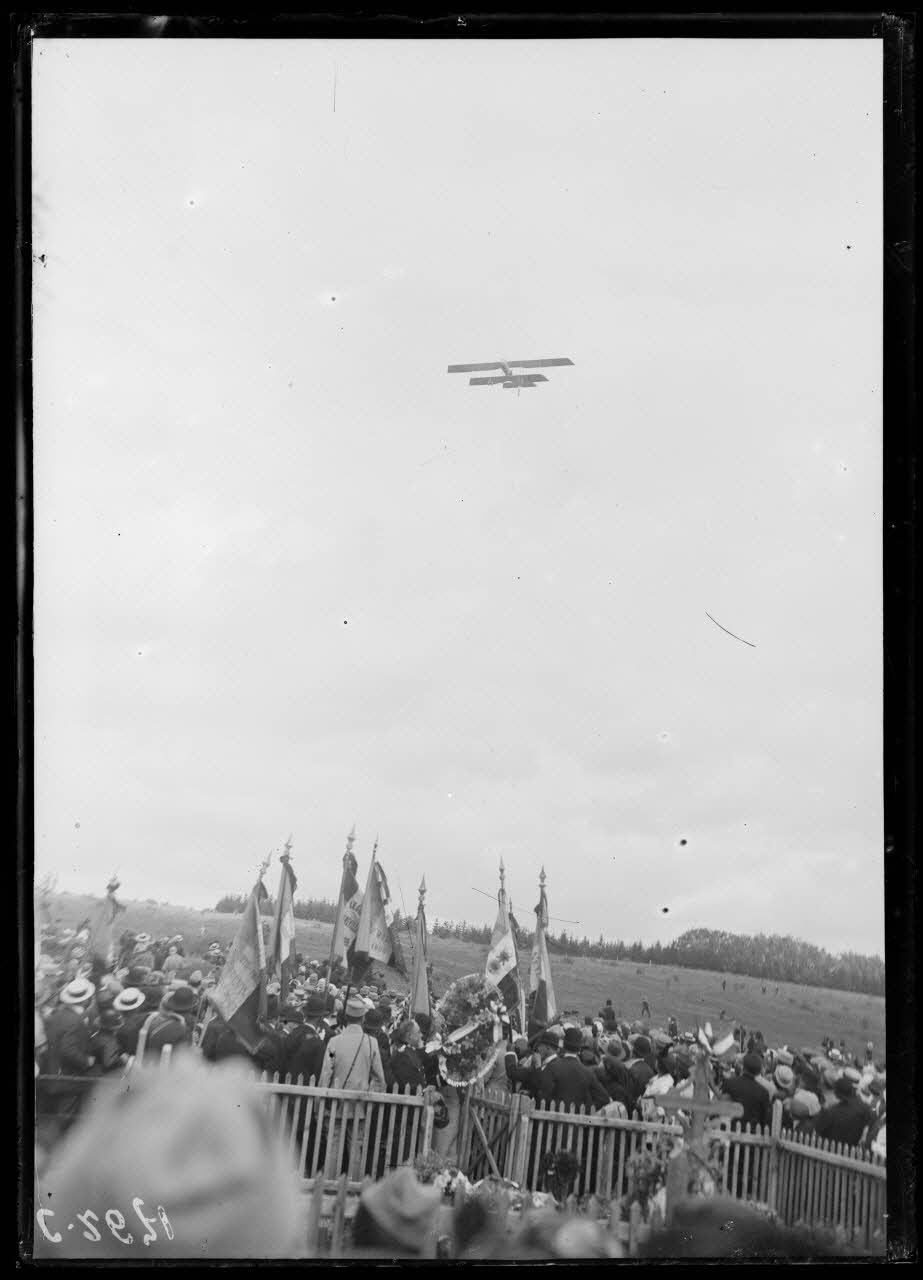 Gerbévillier (Meurthe-et-Moselle). Avion français venant jeter des fleurs sur les tombes. [légende d'origine]