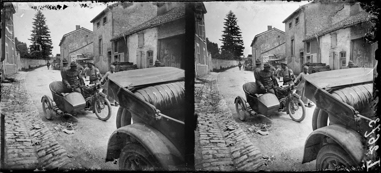 Gondrecourt, agent de liaison d'une compagnie d'infanterie américaine en side-car. [légende d'origine]