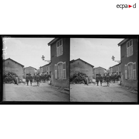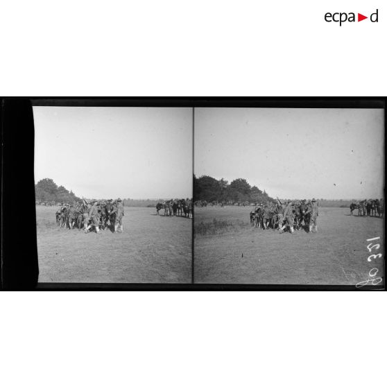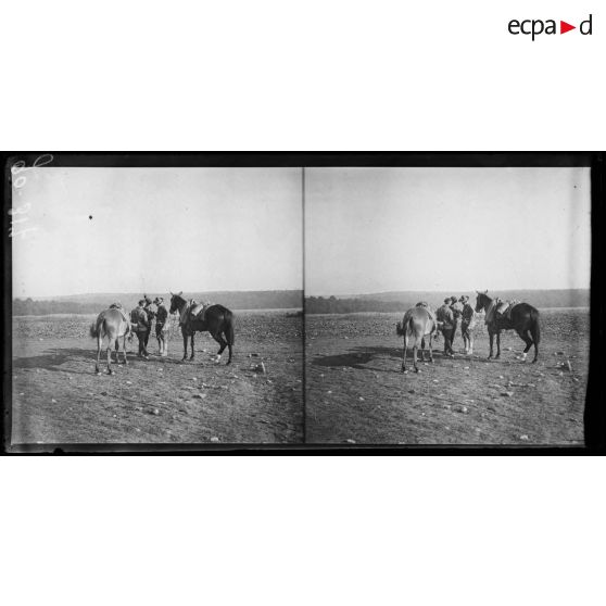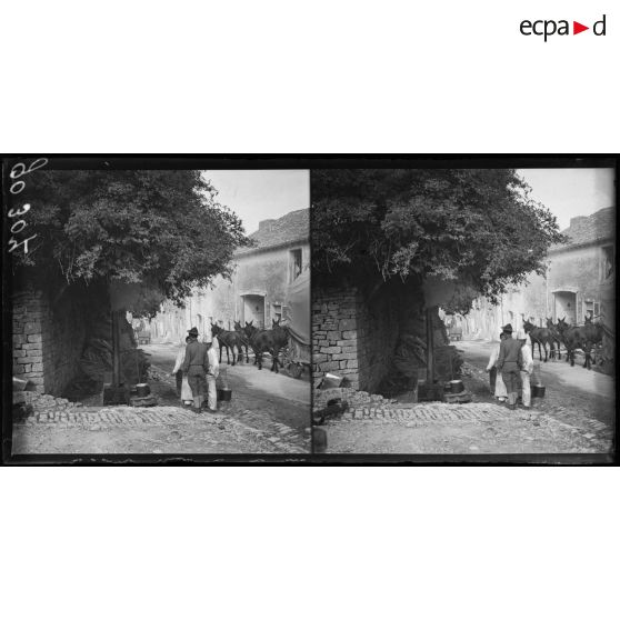 Demange, terrain de manoeuvres des troupes américaines. Rechergement des mulets.