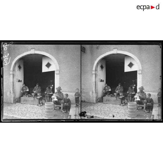 Gondrecourt, camp américain. Soldats américains avec des enfants.