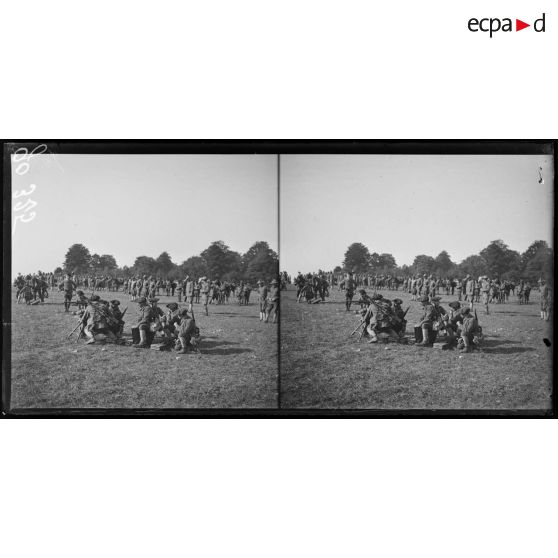 Demange, terrain de manoeuvres des troupes américaines. Mise en batterie des mitrailleuses.