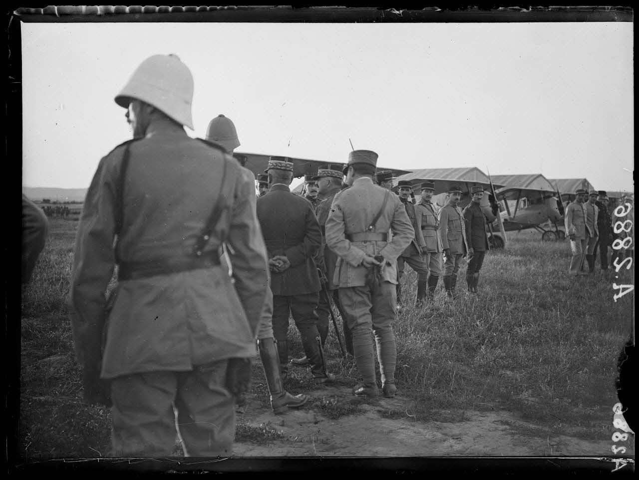 Le général Franchet d'Espèrey effectue une tournée d'inspection à Kérasouli. A Gumendzé (actuellement Goumenissa), il passe en revue un bataillon de zouaves (A2884). Au camp d'aviation de Gorgoph, il passe les aviateurs en revue (A2885 à A2887).
