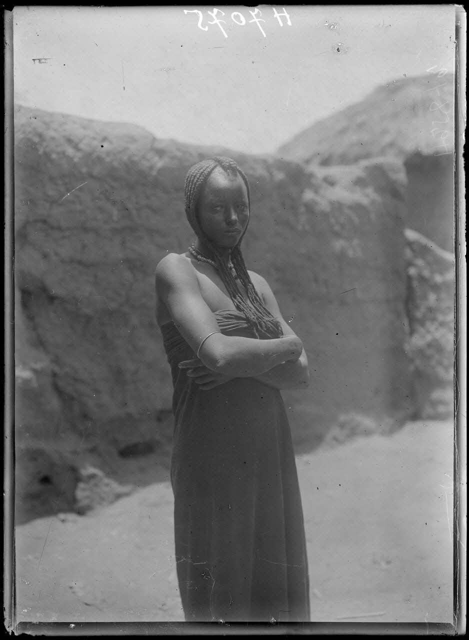 Note : légende reconstituée. La fiche manuscrite de l'opérateur comporte la légende suivante : "préparation des mets (mil)", ce qui ne correspond pas à ce cliché, qui est plutôt à rapprocher des suivants (série de portraits de femmes réalisés à Goulfey).