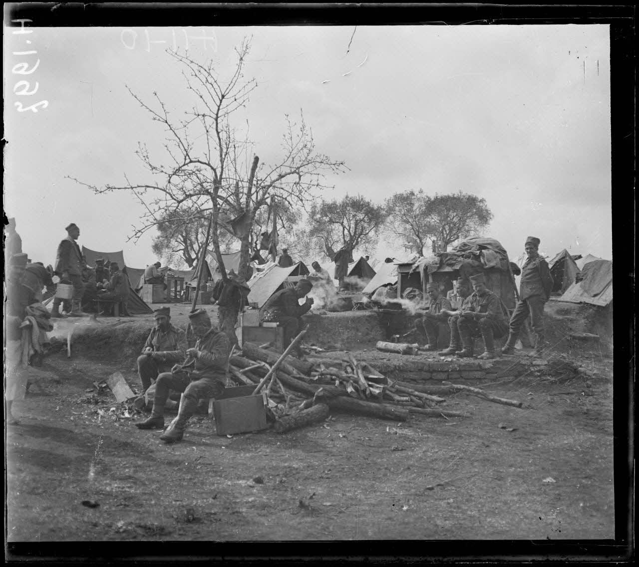 Le 15 mars 1916, dans le camp de Govino, le 3e RG serbe construit une route pendant que le général Mondésir visite le campement. La 5e compagnie du 6e RCA (régiment de chasseurs alpins) effectue une marche alors que des baraquements sont construits pour établir un hôpital. Des tentes sont réservées à la section sanitaire qui accueille des malades, assure les visites médicales des soldats serbes et s'occupe des soins de propreté et de la pharmacie. Des étuves à désinfection sont à disposition pour que les soldats se nettoient (se débarasser des parasites). Dans les cuisines, du café est préparé.