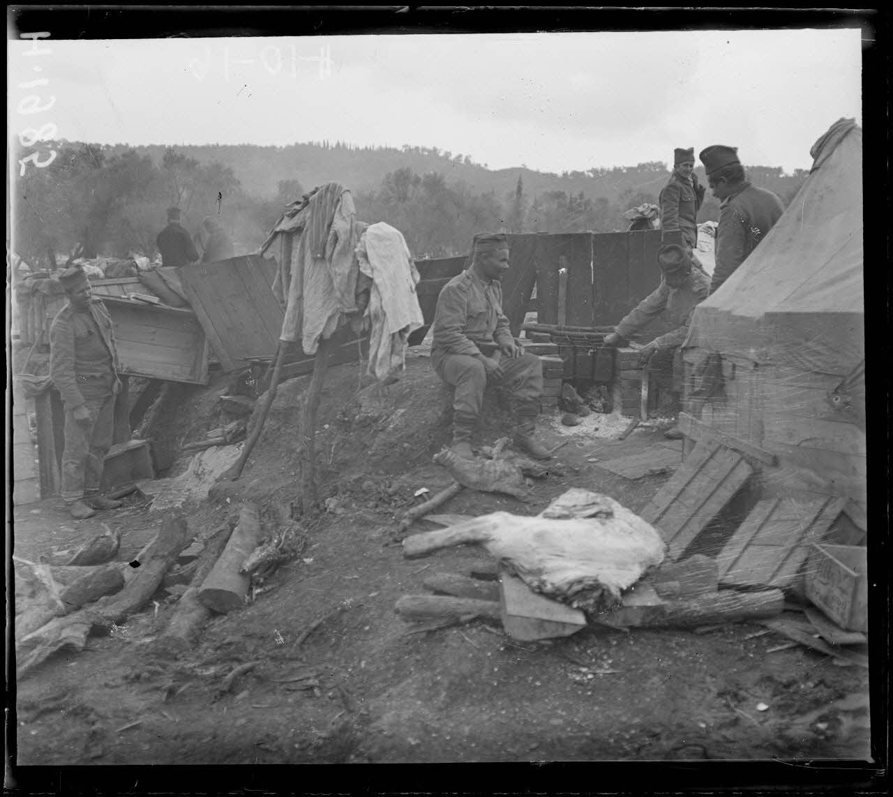 Le 15 mars 1916, dans le camp de Govino, le 3e RG serbe construit une route pendant que le général Mondésir visite le campement. La 5e compagnie du 6e RCA (régiment de chasseurs alpins) effectue une marche alors que des baraquements sont construits pour établir un hôpital. Des tentes sont réservées à la section sanitaire qui accueille des malades, assure les visites médicales des soldats serbes et s'occupe des soins de propreté et de la pharmacie. Des étuves à désinfection sont à disposition pour que les soldats se nettoient (se débarasser des parasites). Dans les cuisines, du café est préparé.