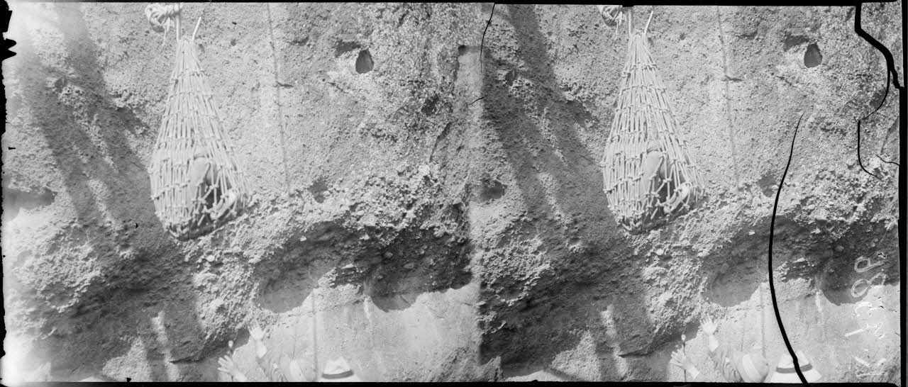 Plusieurs plaques montrent le ravitaillement d'un monastère inaccessible à l'aide d'une corde.
