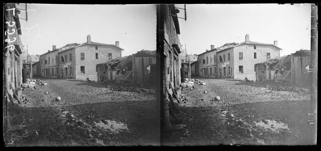 - à Ribécourt-Dreslincourt, des voitures de ravitaillement hippomobiles du 55e BCP (bataillon du chasseurs à pied) traversent le village en ruine (SPA 76 L 3521), les ruines de l'église (SPA 76 L 3522), des soldats français et des ambulances américaines (SPA 76 L 3523) ;