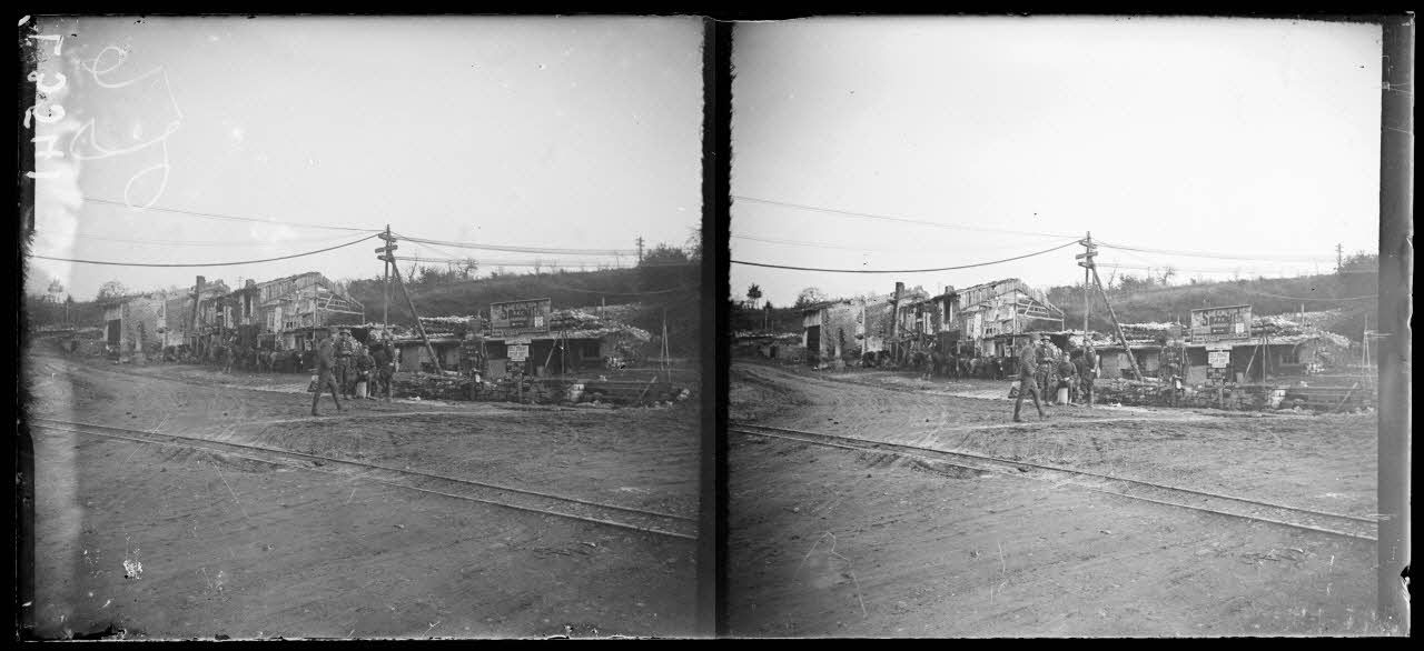 - à Ribécourt-Dreslincourt, des voitures de ravitaillement hippomobiles du 55e BCP (bataillon du chasseurs à pied) traversent le village en ruine (SPA 76 L 3521), les ruines de l'église (SPA 76 L 3522), des soldats français et des ambulances américaines (SPA 76 L 3523) ;
