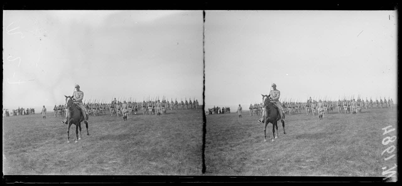 Châlons-sur-Marne (Marne). Revue des troupes américaines par le général Gouraud. Le général Gouraud passe devant les roupes américaines.