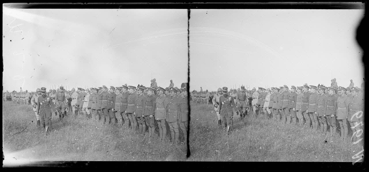 Gravelines (Marne). Revue de la 163e division par le général Gouraud. Le colonel Rozière du 142e fait commandeur de la légion d'honneur.