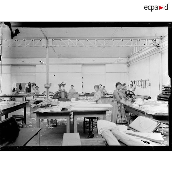 Grenoble. Manufacture des gants Perrin-Frères. L'apprêt du tissu pour les gants.