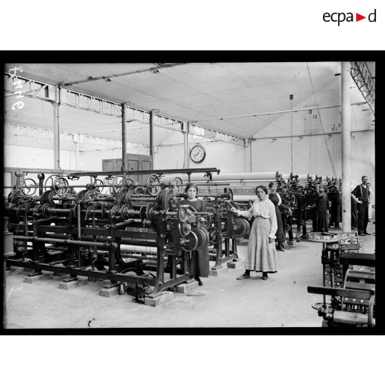 Grenoble. Manufacture des gants Perrin-Frères. Le tissage de l'étoffe employé pour les gants de tissu.
