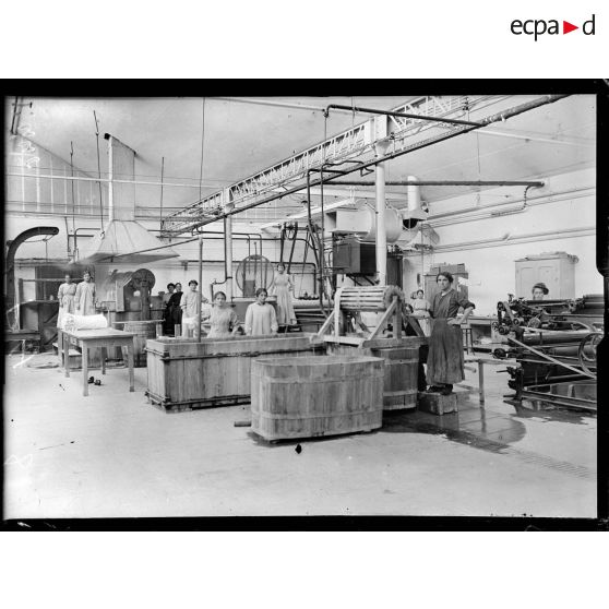 Grenoble. Manufacture des gants Perrin-Frères. Préparation des peaux. [légende d'origine]