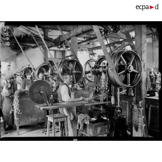 Grenoble. Manufacture des gants Perrin-Frères. La fabrication des boutons pression.