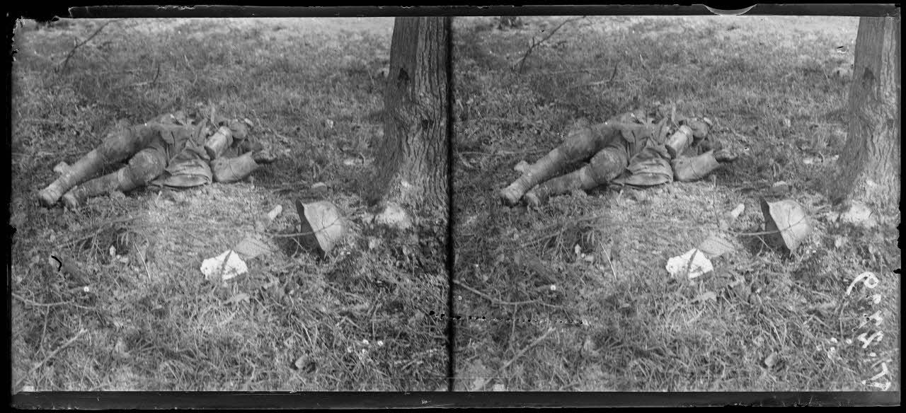 Grivesnes, Somme, dans le parc du château, les cadavres allemands après notre attaque du 9 mai.