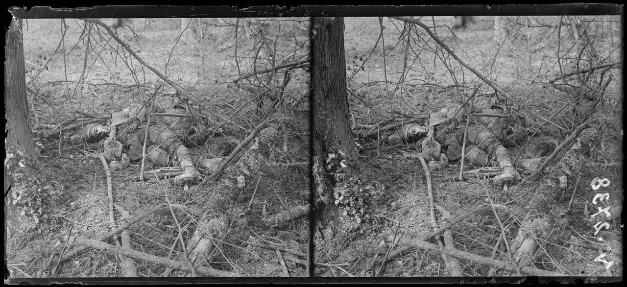 Grivesnes, Somme, dans le parc du château, les cadavres allemands après notre attaque du 9 mai.