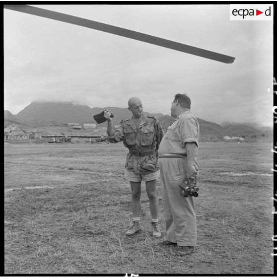 Le médecin-commandant Grauwin s'entretient avec le cameraman Gérard Py du SPI (Service presse information).