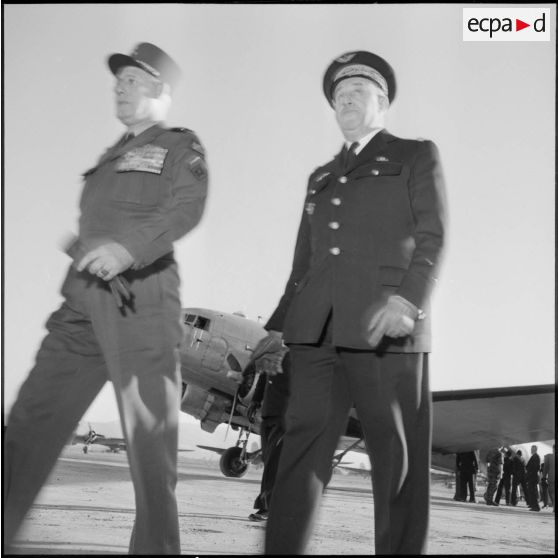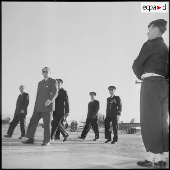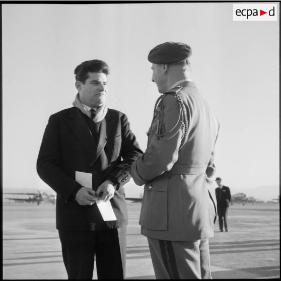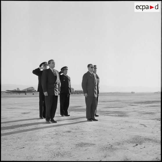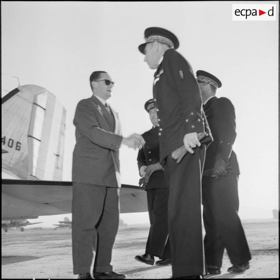 Accueil de M. Bourgès-Maunoury par les autorités militaires, Maison-Blanche.