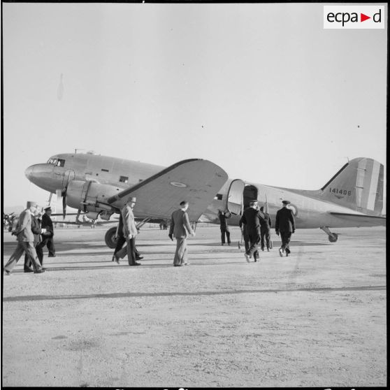 Atterrissage d'un Dakota C-47 sur le terrain de Maison-Blanche.