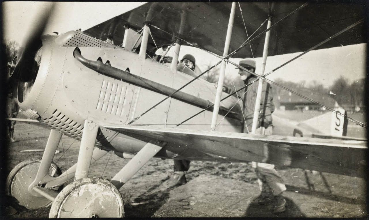 D169-19-7. [Guynemer au poste de pilotage de son SPAD].