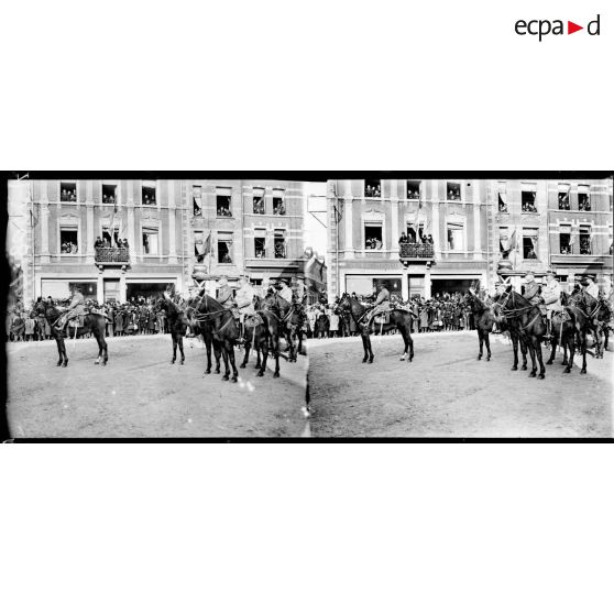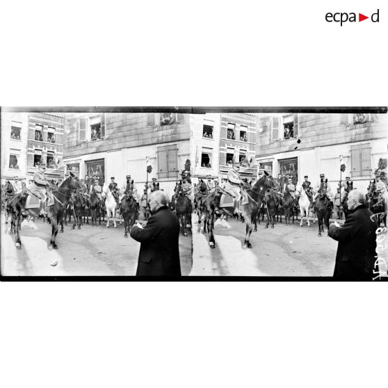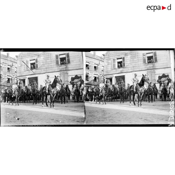 Neufchâteau, le général Guillaumat salue les troupes du 158e RI.